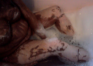 Continuing this research the time to wash off the paint and finish this endeavour my daughter suggested continuing the process by photographing me whilst attempting to remove the paint in the bath, I have to admit I was not overly happy in doing this, however it did seem like a natural conclusion to this experiment.